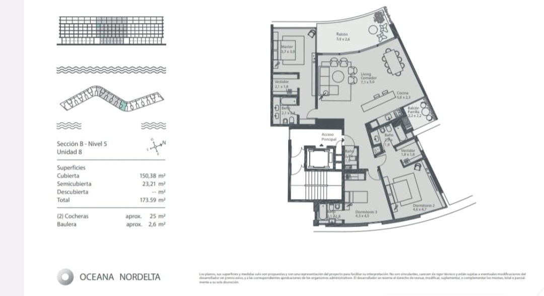 Venta de Departamento 4 ambientes en Oceana, Nordelta. Moderno y luminoso departamento de cuatro ambientes con una superficie total de 173m2, con 2 cocheras cubiertas y baulera. Hall de entrada, toilette. Cocina integrada con barra con vista hacia el balcón, living comedor amplio. Balcon con vista increíble al lago. 3 Dormitorios. Suite principal con vestidor y baño con doble bacha, con vista al algo central. Otro dormitorio en suite con vestidor y otro con placard, Blacon secundario con parrilla. Confort y amplitud. Construcción high-end. Vistas inigualables del amanecer y el atardecer. El verdadero significado de la palabra bienestar. Todo lo que la vida privada y social puede necesitar: muelle y mirador, piletas y solarium, gimnasio moderno y pileta indoor climatizada, Sauna, senderos de paseo, salón de yoga y salas de coworking. Una invitación a dejarse llevar por el arte con cuatro obras site especific instaladas en los espacios comunes. Muy cerca del nuevo centro de Nordelta. De fácil acceso pero con la tranquilidad de estar en una isla propia y tener una vista inigualable del Lago Central. Nota: Martillero Responsable Silvana Avella - CMCPSI 7029. Las medidas, superficies, metros y proporciones indicadas en el presente son aproximadas y sujetas a verificación, variación y/o ajuste. El precio de la presente operación y/o de las expensas aquí indicadas están sujetos a modificación sin previo aviso. El presente anuncio es solo a título informativo pues la venta / alquiler de la misma esta supeditado a que el propietario cumplimente el tramite ante la AFIP para la obtencion del numbero de COTI correspondiente.